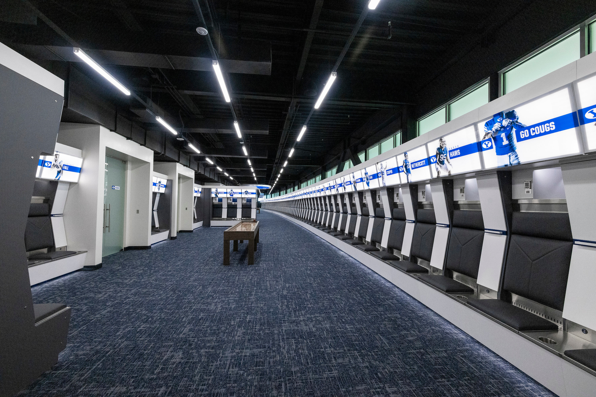 “This is awesome. We are super grateful for the staff, administration and school for these renovations,” said BYU junior center James Empey, a 2020 team captain. “We are blessed to have such a nice place to utilize as we get ready for workouts, practices and games. I liked that they involved us as players and made sure to ask us what we were looking for and what we wanted in a locker room. It was great to have that input in the process. There is so much attention to detail. This is great.”